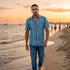 Camisa masculina confeccionada en New Saari (tejido inspirado en la seda india), un material ligero y de caída fluida que aporta frescura y movimiento. Con diseño versátil y estampados vibrantes, es ideal para un look relajado de playa, una salida urbana con estilo o una noche de verano.