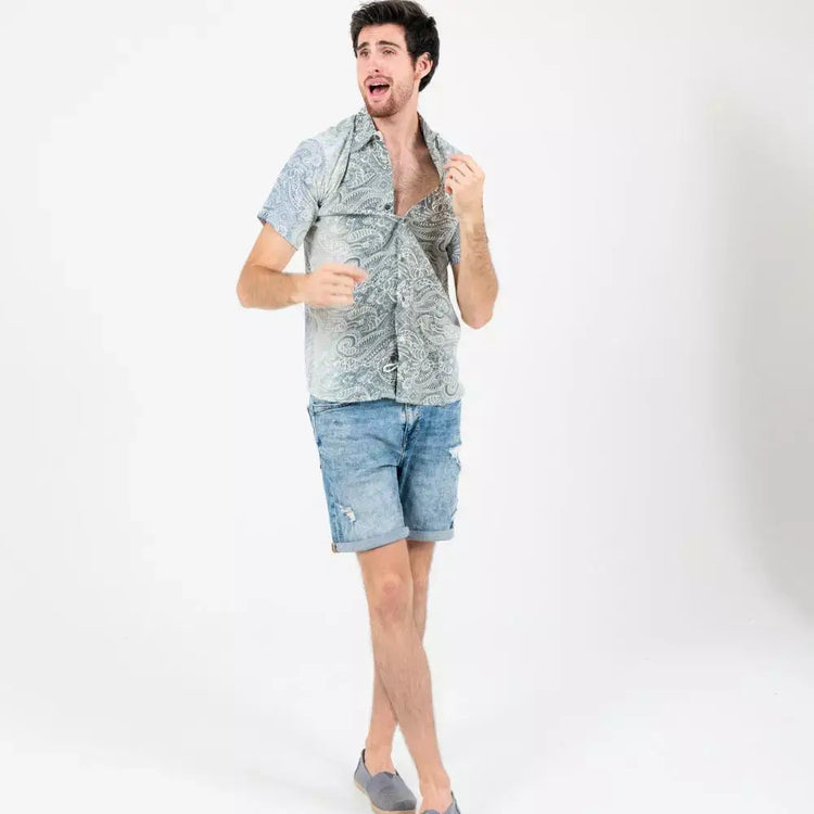Camisa masculina confeccionada en New Saari (tejido inspirado en la seda india), un material ligero y de caída fluida que aporta frescura y movimiento. Con diseño versátil y estampados vibrantes, es ideal para un look relajado de playa, una salida urbana con estilo o una noche de verano.